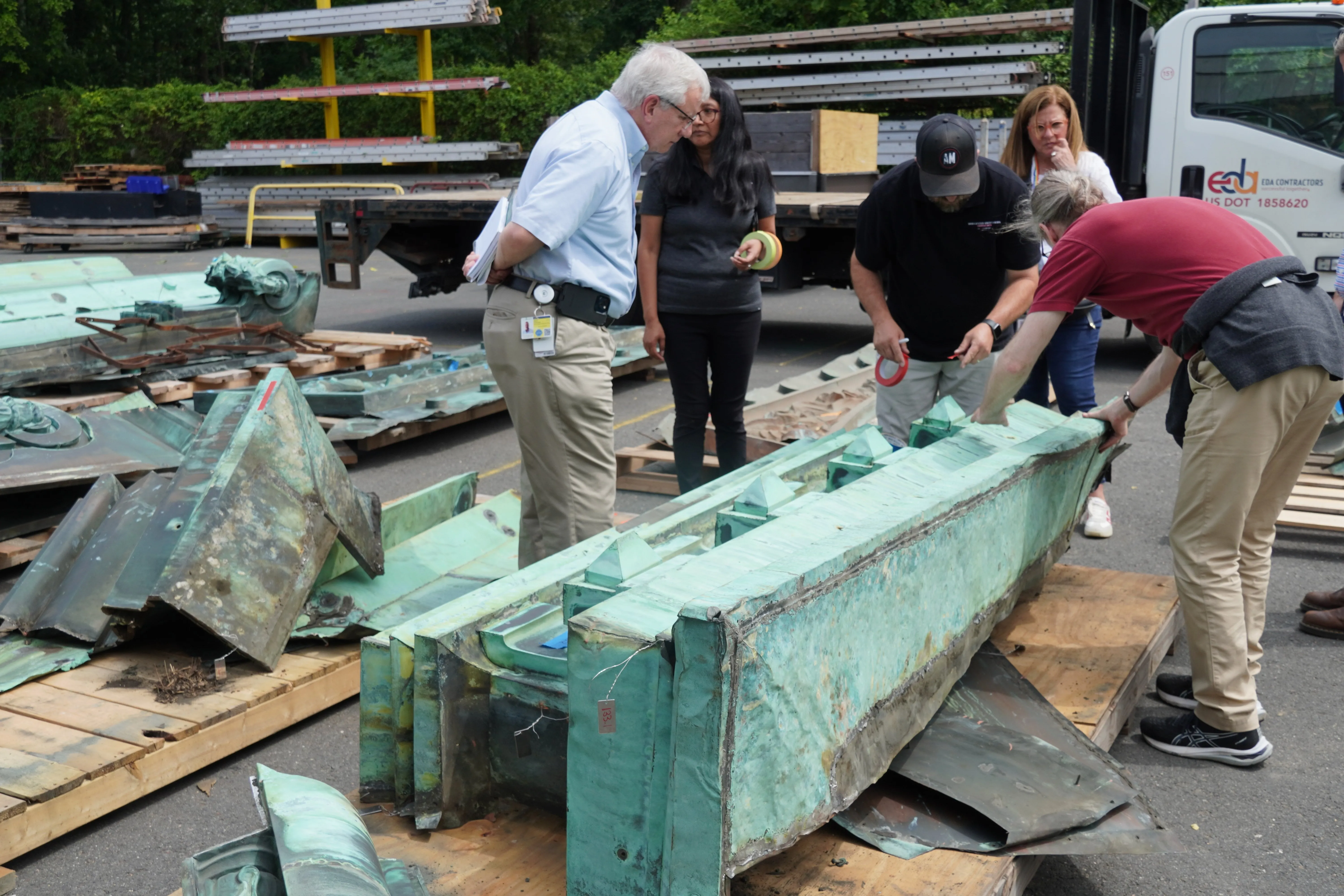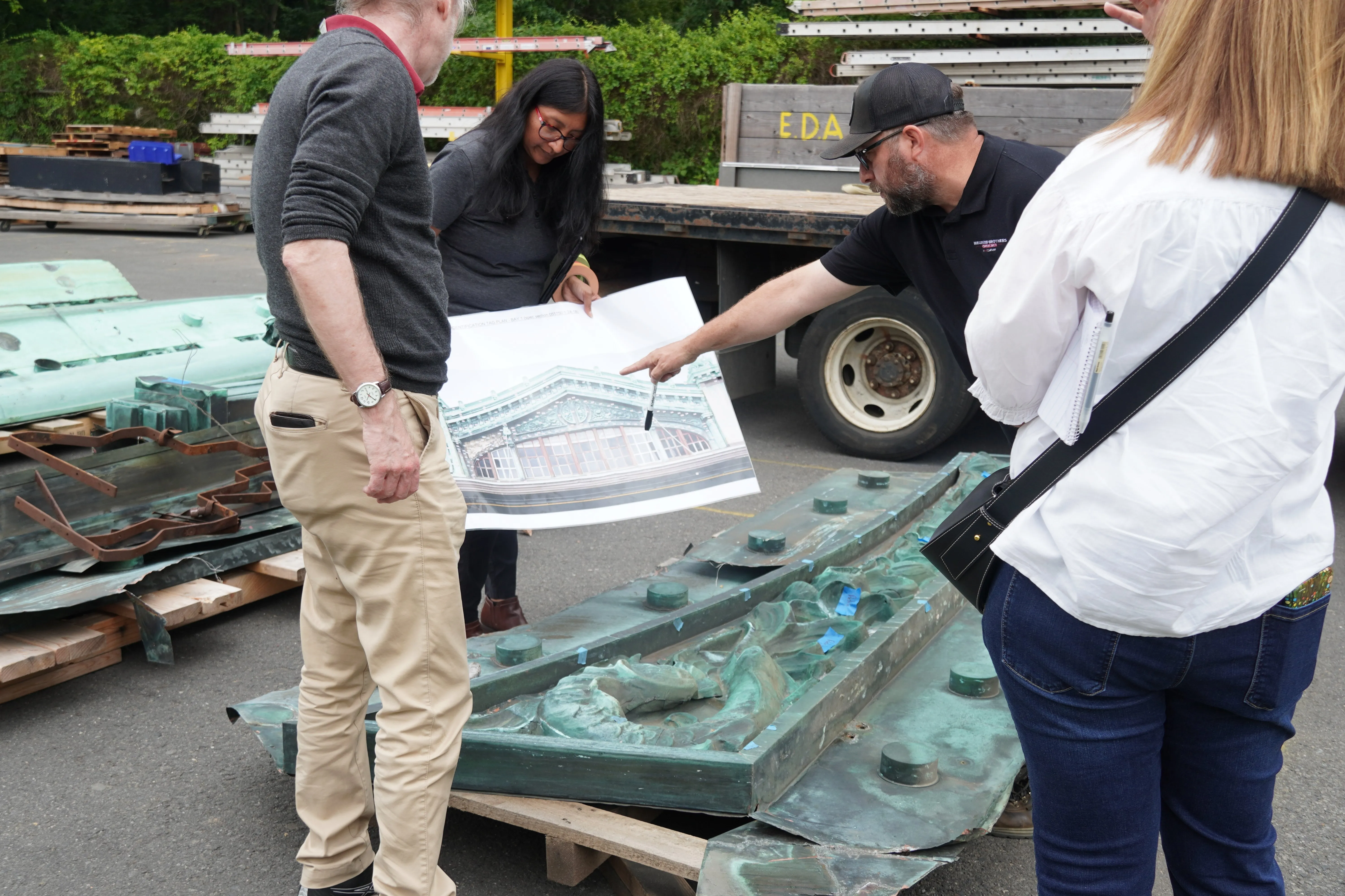 That’s exactly what’s happening now at EDA’s Ewing facility, where select pieces of the Hoboken Ferry Terminal have arrived for inspection. Together with the building’s architects, GC Hunter Roberts, and members of the historic society, our experts at BBCI, an EDA company, are evaluating each component to determine what can be preserved, what needs repair, and what should be newly fabricated.