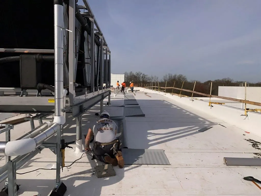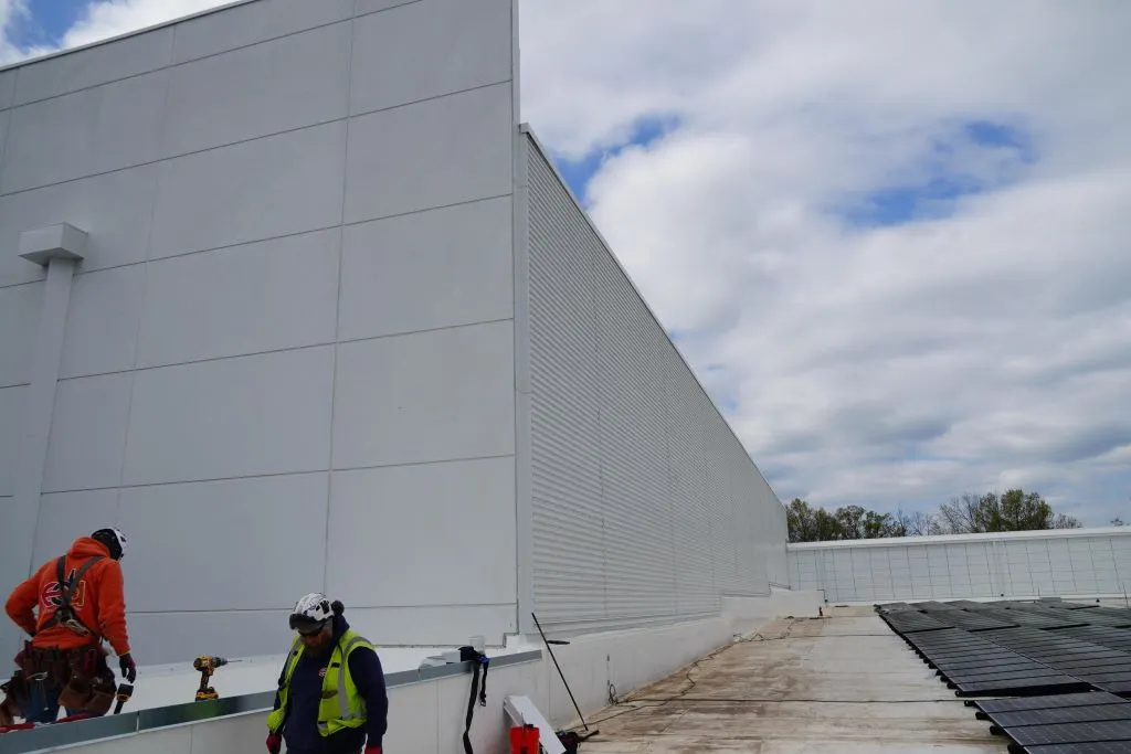 New roof with insulated panels, corrugated panels & all coping installed at QTS Piscataway.