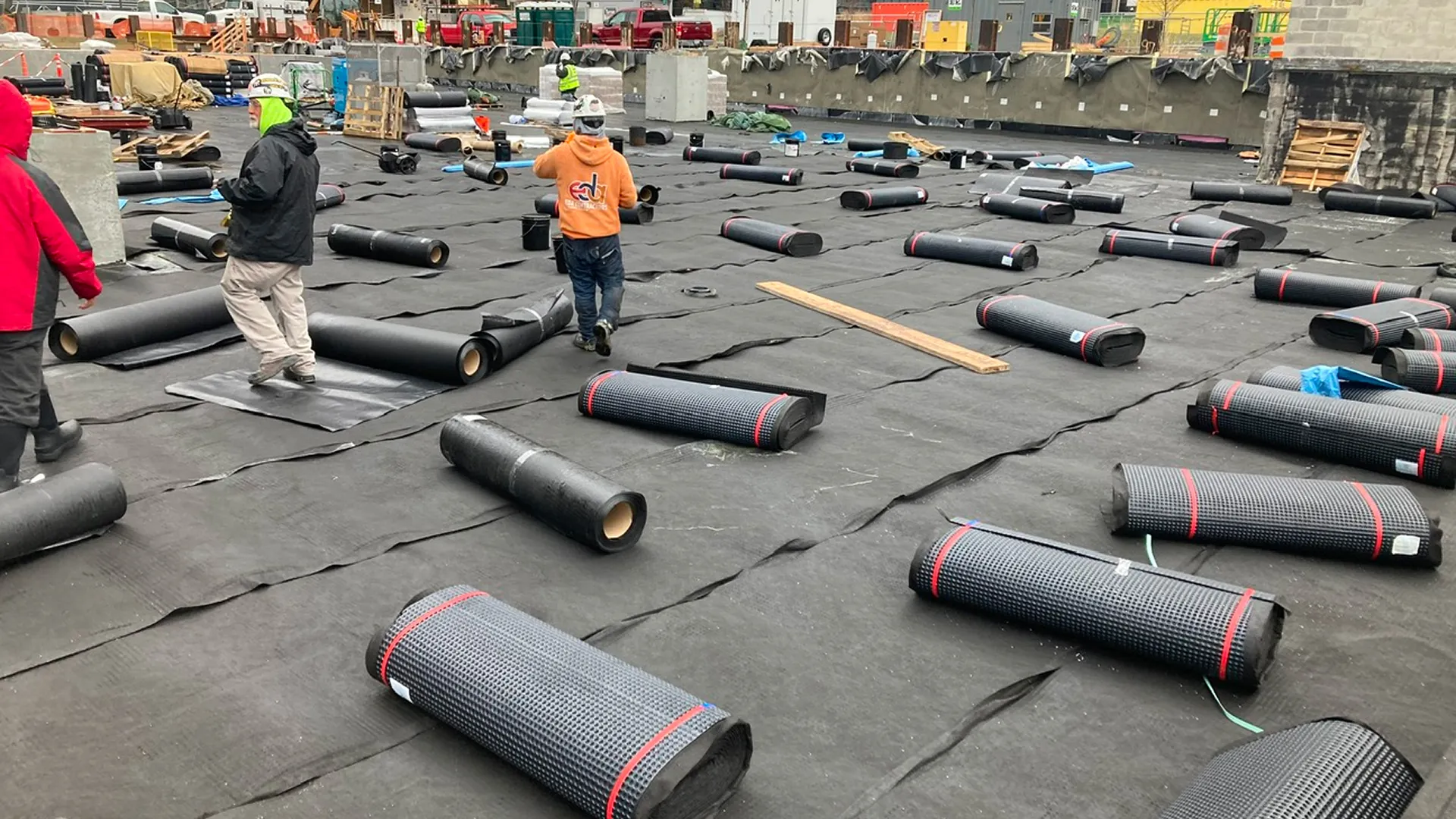 Under-slab waterproofing systems are installed beneath concrete slabs, footings, and gradebeams to create a continuous moisture barrier. These systems help prevent water migration into occupied areas and sensitive building spaces. EDA coordinates installation to maintain continuity at penetrations and perimeter interfaces.